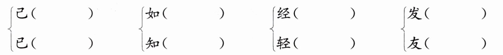 三、(示例)自己 已经 如果 知识 经过 轻声 出发 朋友