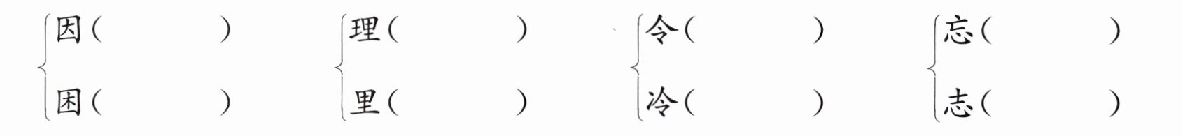 (示例)因为 困难 总理 里面 口令 冷冻 忘形 同志