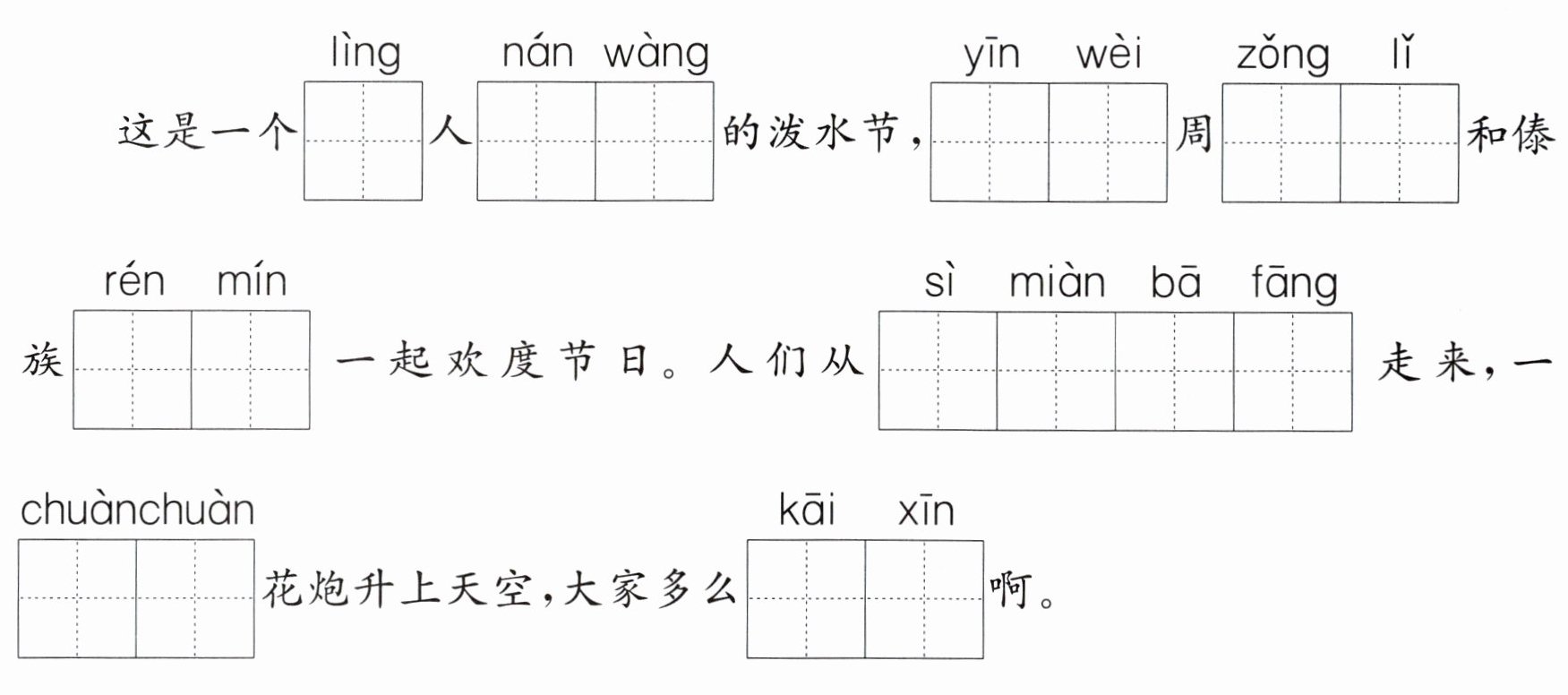 ▭ 。2.例:傣族人民一边欢呼,