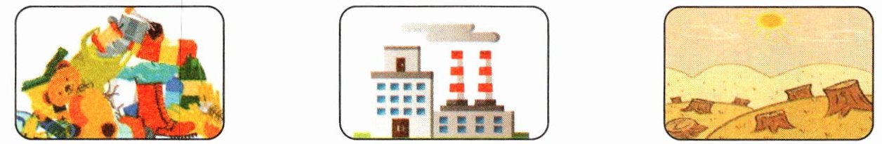 四 观察下面图片,联系生活实际,指出环境污染的现象,并提出建议。
