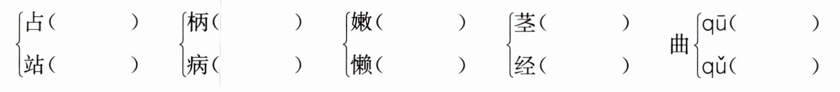 占据 站立 叶柄 生病 嫩绿 懒惰 茎叶 经过 弯曲 乐曲