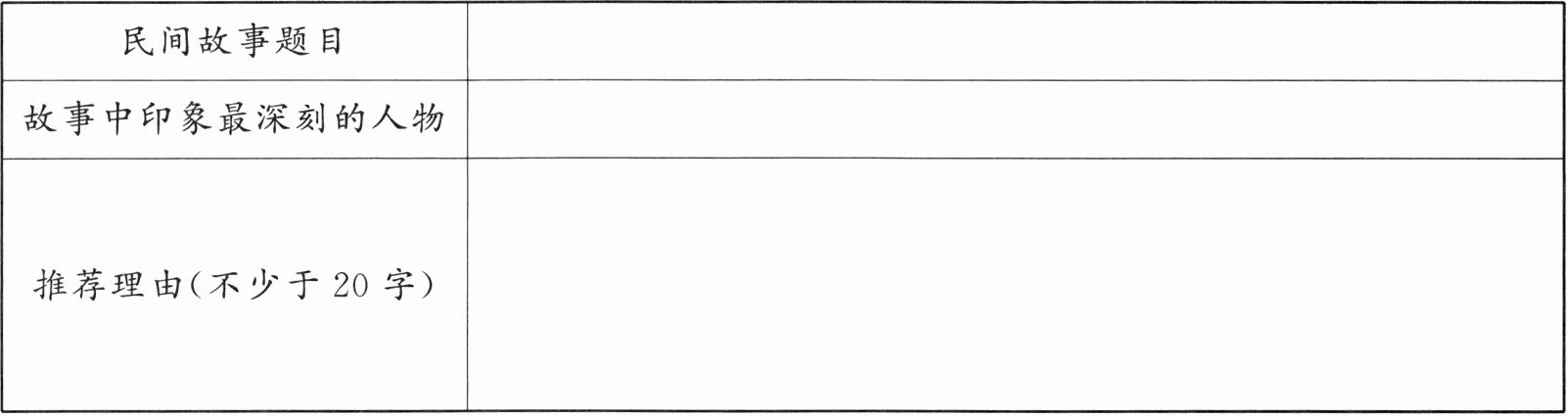 )5. 你能推荐一个课外阅读过的民间故事吗?请完成下面的表格。