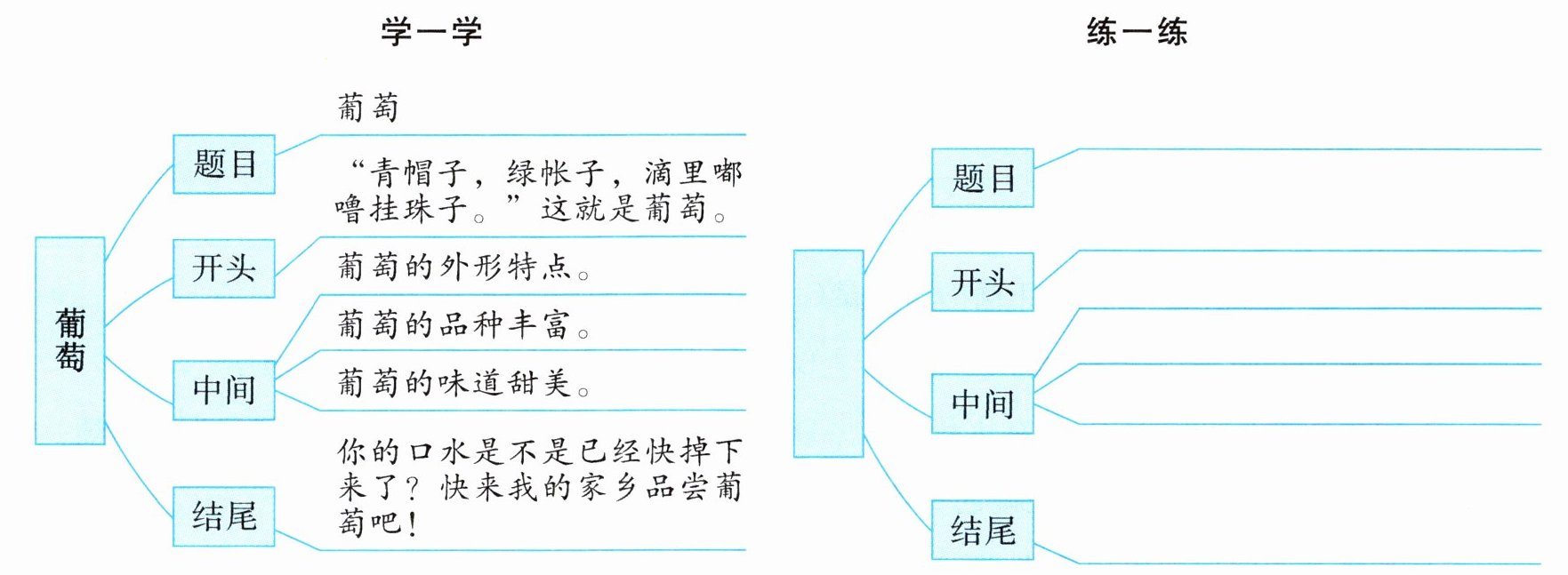 【开头优秀范例】“青帽子,绿帐子,滴里嘟噜挂珠子。”你们能猜到这则谜语说的是谁吗?没错,它就是我们生活中常见又让人垂涎欲滴的葡萄。