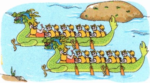 (示例)龙舟比赛正在进行,大家都浸在欢乐的海洋里。