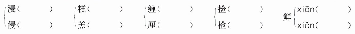 (3)“浸”字把无形的花香写得可感可触。请你仿照这种写法,用“浸”字写一句话,把右图的画面描绘出来。