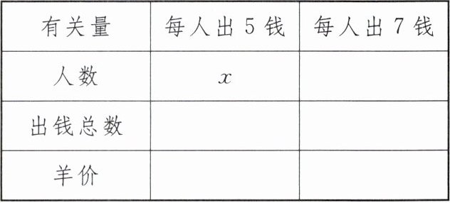 3. 新考向 数学文化《九章算术》中有这样一道题:今有共买羊,人出五,不足四十五;人出七,不足三,问人数、羊价几何?这道题的意思是:今有若干人共买一只羊,若每人出5钱,则还差45钱;若每人出7钱,则仍然差3钱.求买羊的人数及羊价.