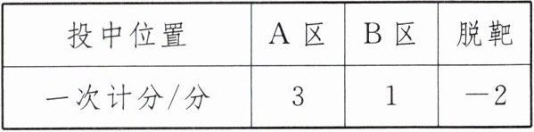 在第一局中, 珍珍投中 A 区 4 次、B 区 2 次, 脱靶 4 次.