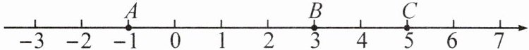 2. 如图,已知数轴上 A,B,C 三点对应的数分别为 -1,3,5,P 为数轴上任意一点,其对应的数为 $ x $. 点 A 与点 P 之间的距离表示为 AP,点 B 与点 P 之间的距离表示为 BP.
