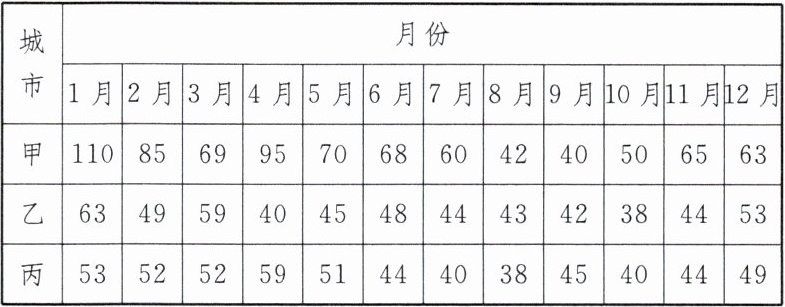 (2)表二是甲、乙、丙三个城市2024年全年AQI指数值的统计数据。