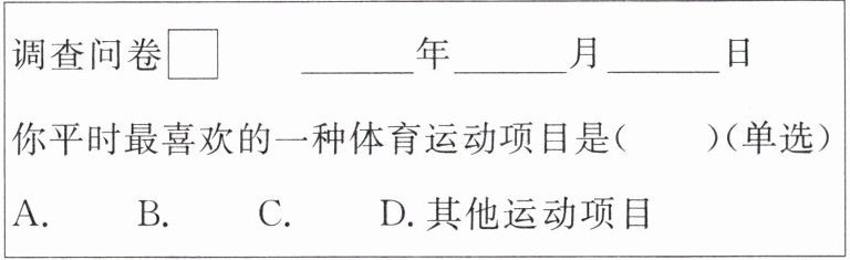 2. 某班级组织活动,为了解同学们喜爱的体育运动项目,设计了如图所示的尚不完整的调查问卷: