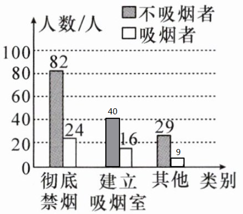 ∴希望建立吸烟室的人数为200−82−24−38=56(人).