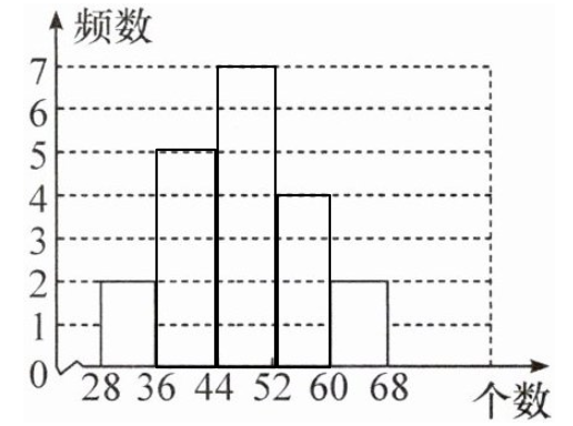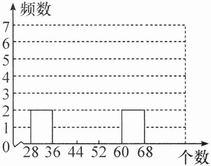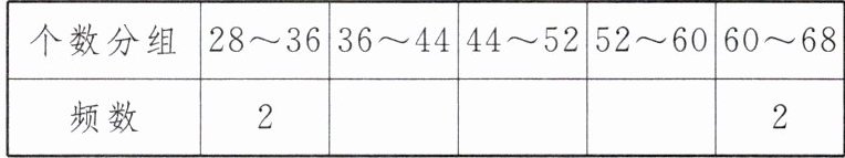 若对这20个数据按组距为8进行分组(每组含前一个边界值,不含后一个边界值),请补全下表及频数直方图.