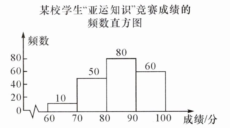 5. (2023·温州)某校学生“亚运知识”竞赛成绩的频数直方图(每一组含前一个边界值,不含后一个边界值)如图所示,其中成绩在80分及以上的学生有