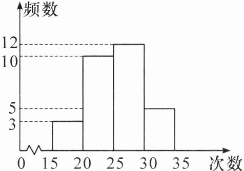 4. 国家近年来出台了一系列加强中学生体育锻炼的措施. 某校在七年级举办了趣味体育活动,其中一项活动是比较参赛选手1分钟内将乒乓球用球拍颠到指定高度的次数. 小明负责记录,并将结果绘制成如图所示的频数直方图,则颠球次数在15~20的人数占总参赛人数的百分比是(