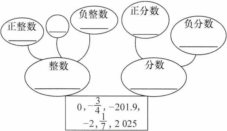 10. 如图,这是数学果园里的一棵“有理数”知识树,请仔细辨别分类,把各类数填在它所属的相应横线上.