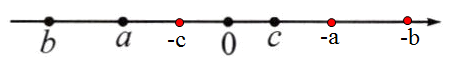 $|c|$.(3) 在数轴上标出表示 $-a$,$-b$,$-c$ 的点,并将 $a$,$b$,$c$,$-a$,$-b$,$-c$,0 用“<”连接起来.