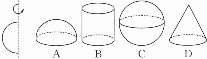 4. (2024·陕西)如图,将半圆绕直径所在的虚线旋转一周,得到的立体图形是(