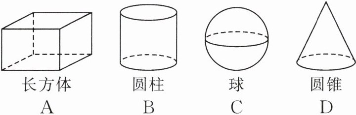 2. 围成下列立体图形的各个面中,每个面都是平的是(