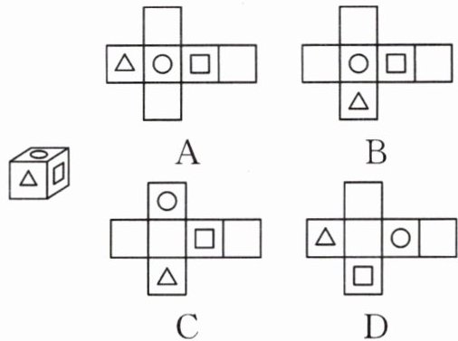 3. 将一个无盖正方体盒子的表面沿某些棱剪开,展开后不能得到的平面图形是 (