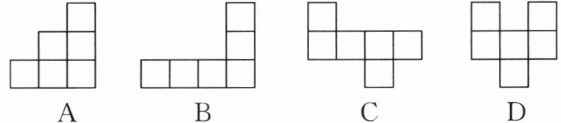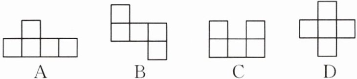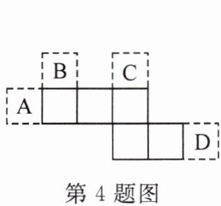 4. 如图所示的 A,B,C,D 四个位置的某个正方形与实线部分的五个正方形组成的图形,不能拼成正方体的是位置