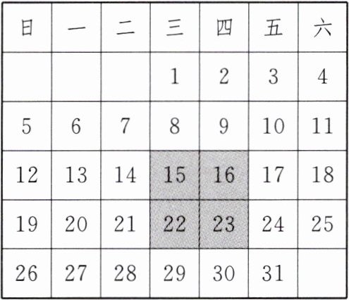 14. (2023·宜昌)在月历上,某些数满足一定的规律.如图,这是某年8月份的月历,任意选择其中所示的含4个数字的方框部分,设右上角的数字为$a$,则下列表述中正确的是(
