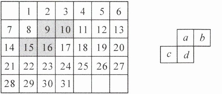 1. 如图,这是某月的月历,用带阴影的方框恰好框住四个数。若这样的阴影方框可以任意移动,且框住这张月历表中的4个数,设a表示的数是x,则这4个数的和为