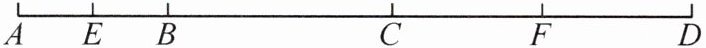 16. 如图,已知 $ AB:BC:CD = 2:3:4 $,$ E $,$ F $ 分别为 $ AB $,$ CD $ 的中点,且 $ EF = 15 $,求线段 $ AD $ 的长。