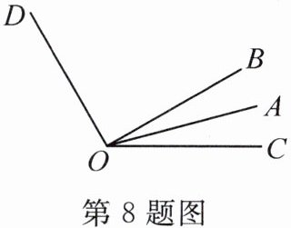 8. 如图,$\angle COD=120^{\circ}$,$\angle BOD=90^{\circ}$,$OA$平分$\angle BOC$,求$\angle AOD$的度数.