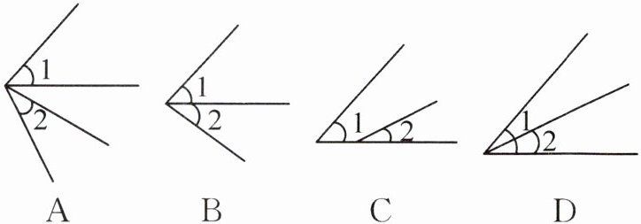 2. 比较$\angle 1$与$\angle 2$的大小,下列放置方法正确的是(
