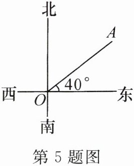 5. 如图,小明家在点$O$处,学校在点$A$处,则学校位于小明家的(
