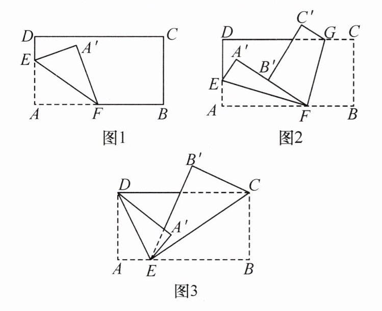 (2)希望小组受此问题的启发,将长方形纸片按图2所示的方式折叠,$EF$,$FG$为折痕,点$A'$,$B'$,$F$恰好在同一条直线上,求$\angle EFG$的度数.