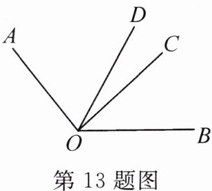 13. 如图,$OD$是$\angle AOB$的平分线,$\angle AOC=2\angle BOC$,$\angle COD=21^{\circ}20'$,则$\angle AOB$的度数为