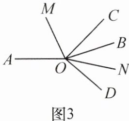 (3) 当 $ ∠AOB = α $,$ ∠COD = β $时,按如图 3 所示的方式摆放在一起,且 OM 和 ON 分别是 $ ∠AOC $,$ ∠BOD $的平分线,求 $ ∠MON $的度数.(用含 α,β 的代数式表示,且 $ 0^{\circ} < α < 180^{\circ} $,$ 0^{\circ} < β < 180^{\circ} $)