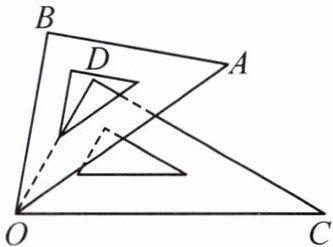9. (2024·合肥蜀山区期末)已知一副直角三角板按如图所示的方式放置,其中 $ \angle COD = 60° $,$ \angle AOB = 45° $,经测量 $ \angle BOC = 80° $,则 $ \angle AOD $ 度数为(