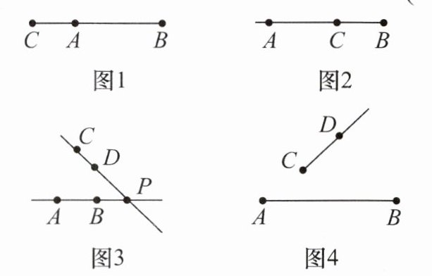 D.如图 4,射线 $ CD $ 和线段 $ AB $ 没有交点