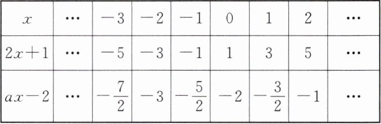 14. 观察下表,写出关于$x$的方程$2x + 1 = ax - 2$的解是