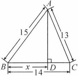 $【$例$ 2】$如图,在$\triangle ABC$中,$AB = 15,$$BC = 14,$$AC = 13,$$AD\perp BC,$求$BD$的长$.$