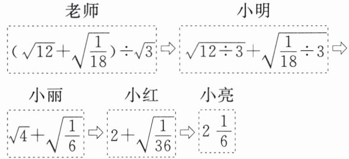 7. 在计算$(\sqrt{24}-\sqrt{\frac{1}{2}})-(\sqrt{\frac{1}{8}}+\sqrt{6})$时,小敏的解题过程如下: