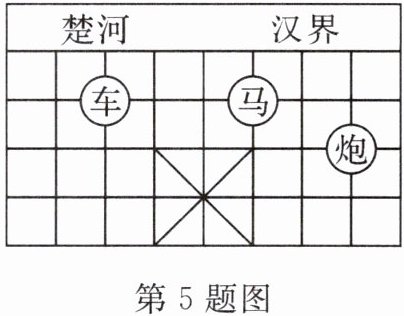 5. 如图,若在象棋盘上建立平面直角坐标系,使棋子“车”的坐标为$(-2,2)$,“马”的坐标为$(1,2)$,则棋子“炮”的坐标为(