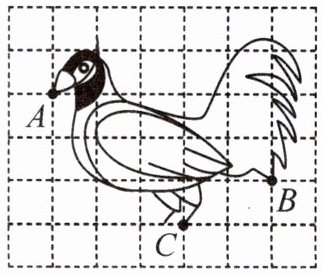 6. 褐马鸡是我国的珍稀鸟类,如图所示的是保护褐马鸡宣传牌上利用网格画出的褐马鸡的示意图.若建立适当的平面直角坐标系,表示嘴部点$A$的坐标为$(-3,3)$,表示尾部点$B$的坐标为$(2,1)$,则表示足部点$C$的坐标为(