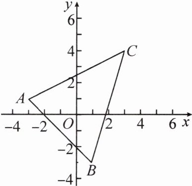 3. 如图,已知点 $A(-3,1)$,$B(1,-3)$,$C(3,4)$,求 $\triangle ABC$ 的面积.