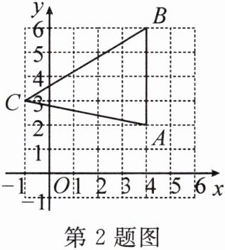 2. 如图,$\triangle ABC$ 三个顶点的坐标分别为 $A(4,2)$,$B(4,6)$,$C(-1,3)$,则 $\triangle ABC$ 的面积为____.