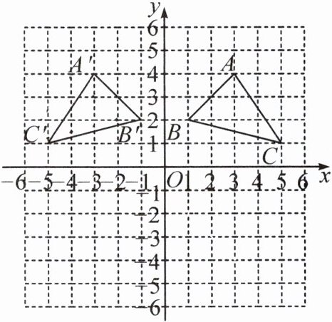 (1)△ABC与△A'B'C'关于y轴对称.A(3,4),A'(-3,4),B(1,2),B'(-1,2),C(5,1),C'(-5,1),对应顶点的纵坐标相同,横坐标互为相反数.