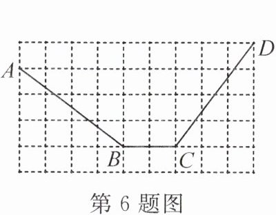 6. 下图是 5×9 的方格纸,每个小正方形的边长都是 1 cm,一只蚂蚁沿图中折线(A→B→C→D)从点 A 爬到点 D,共爬行了