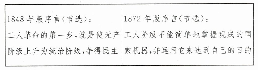 10. 如图所示是《共产党宣言》两个时期的不同版本的序言。《共产党宣言》的修改表明(