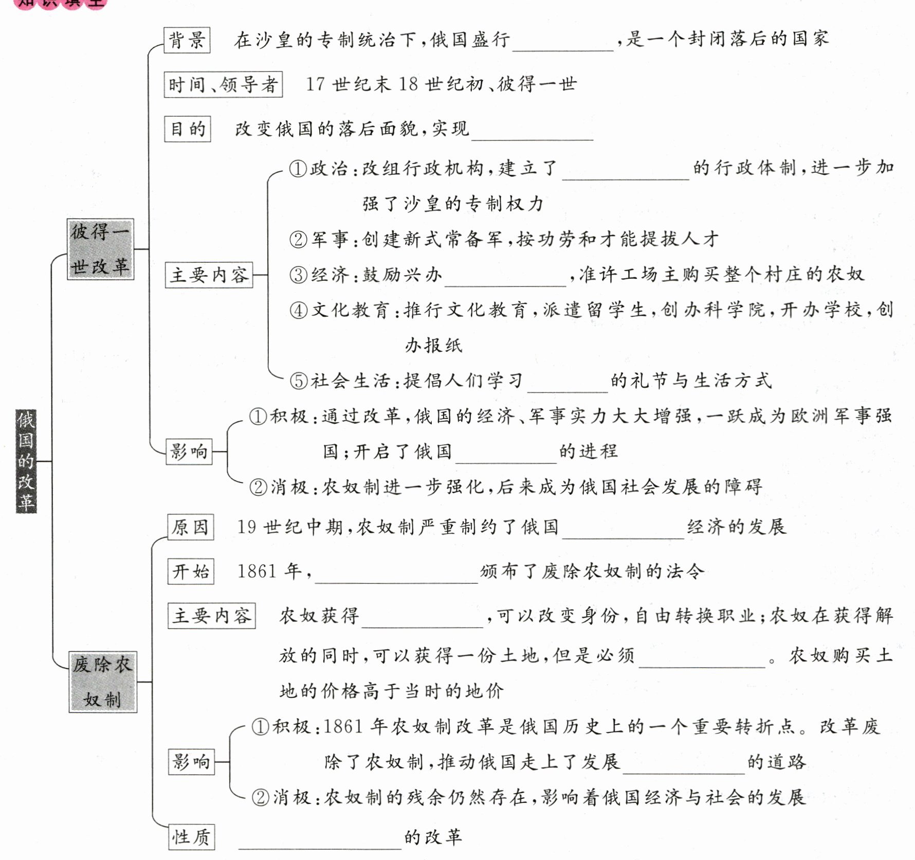 富国强兵 中央集权 手工工场 西方 近代化 亚历山大二世 人身自由 出钱赎买 资本主义 资产阶级性质