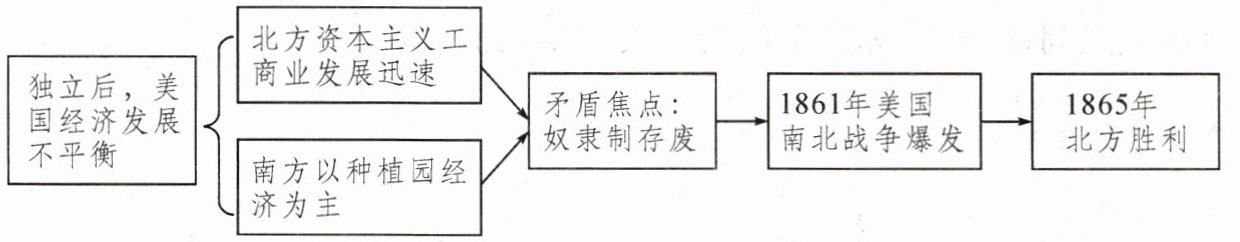 1. 19世纪中期,面对西部新增加的土地,美国南方力图扩展奴隶制,建立新的蓄奴州;北方则主张发展资本主义工商业,建立自由州。据此可知,当时的美国(