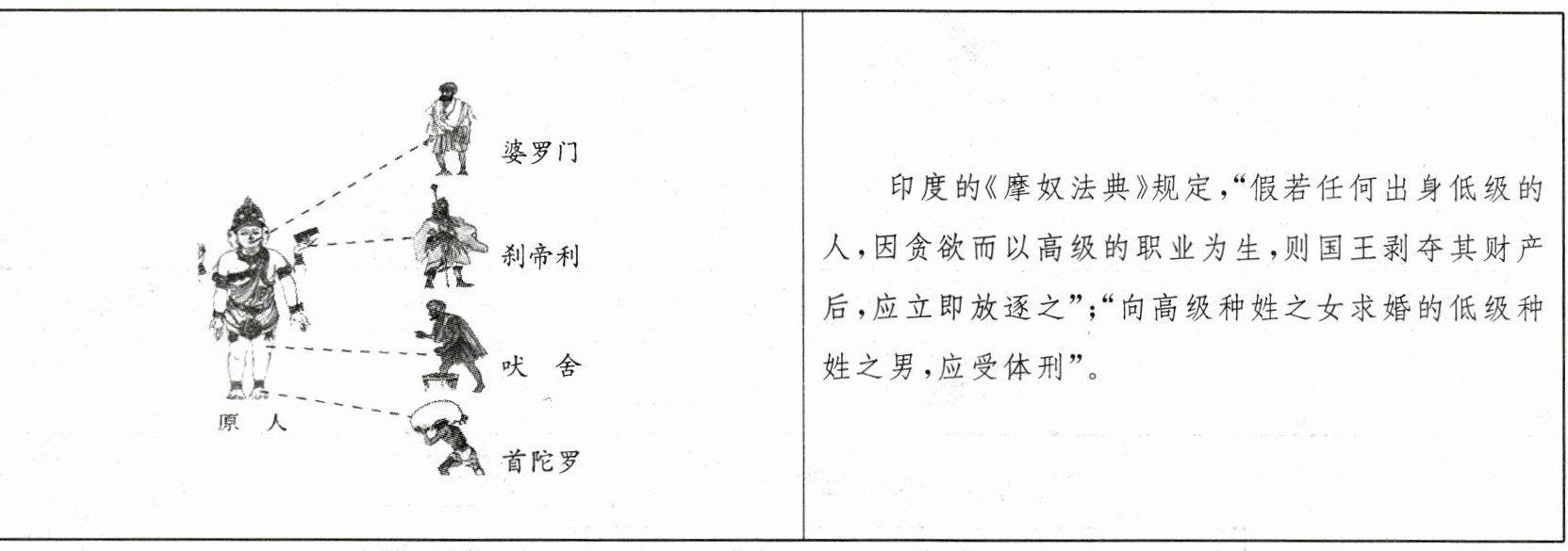 (1) 材料一中的图片反映了古代印度的什么制度?(1分)结合材料一和所学知识,说明该制度的特点。(4分)