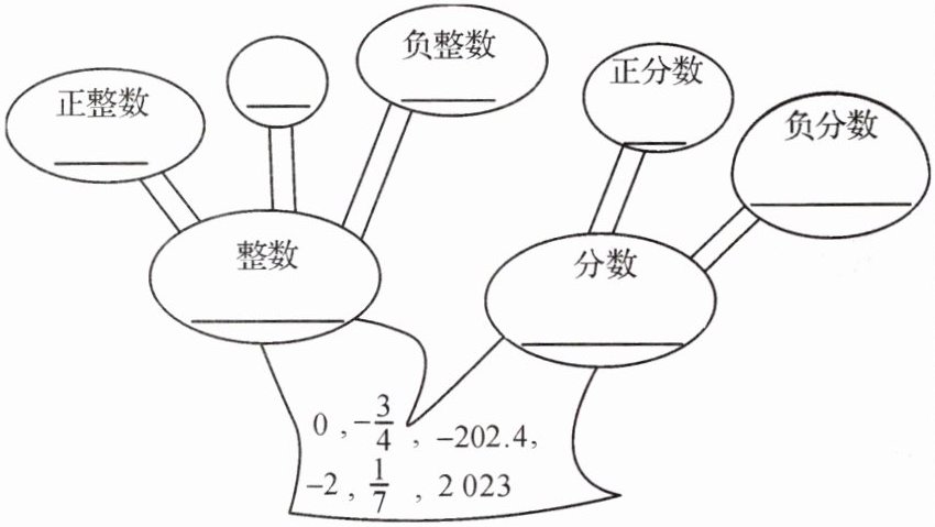 7. 如图所示的是数学果园里的一棵“有理数”知识树,请仔细辨别分类,把各类数填在它所属的相应横线上。