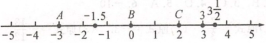 (2)在所给的数轴上画出表示下列三个数的点:$ 3 $,$ -1.5 $,$ 3\frac{1}{2} $;